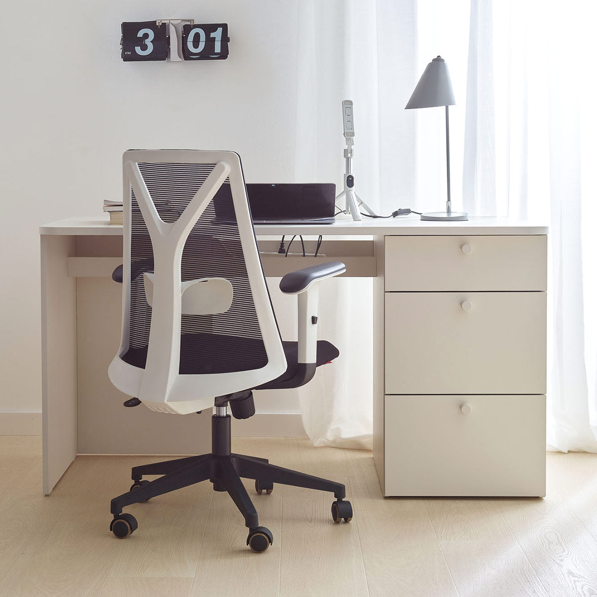 Писарот од колекција RELI со плот со ширина 140 см ќе создаде удобно место за работа и учење. Трите пространи фиоки и функционална ниша за организирање на каблите под плотот ќе направат сè што ви треба лесно достапно.