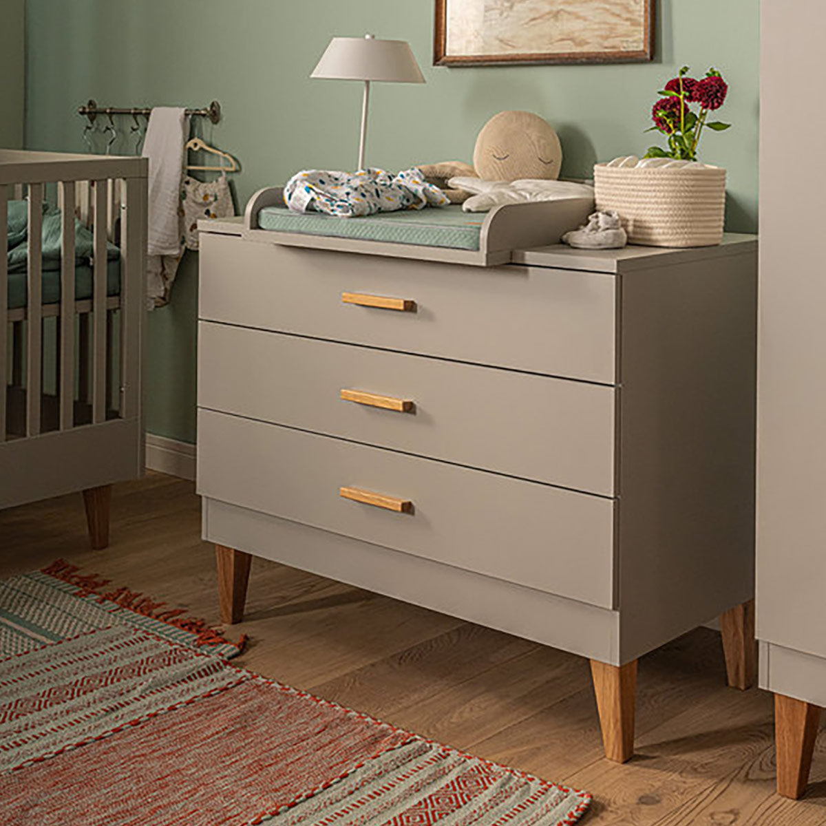 Комодата од колекцијата LOUNGE со 3 длабоки фиоки ќе собере сè облека и додатоци за нега на Вашите деца.